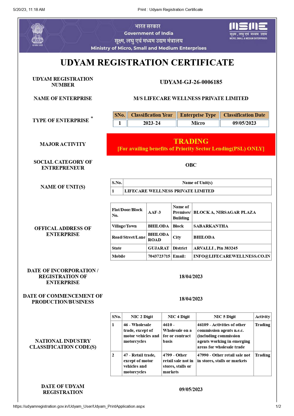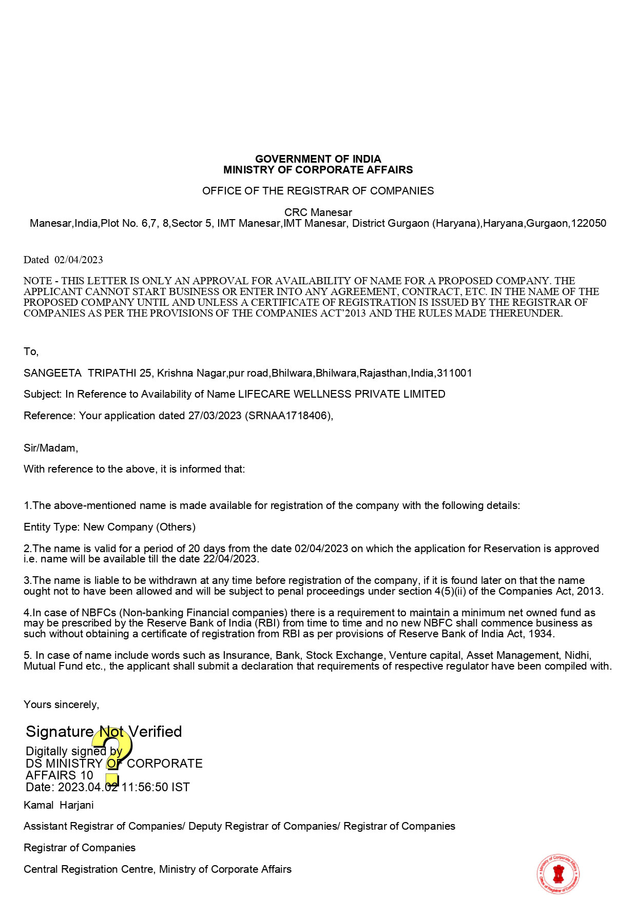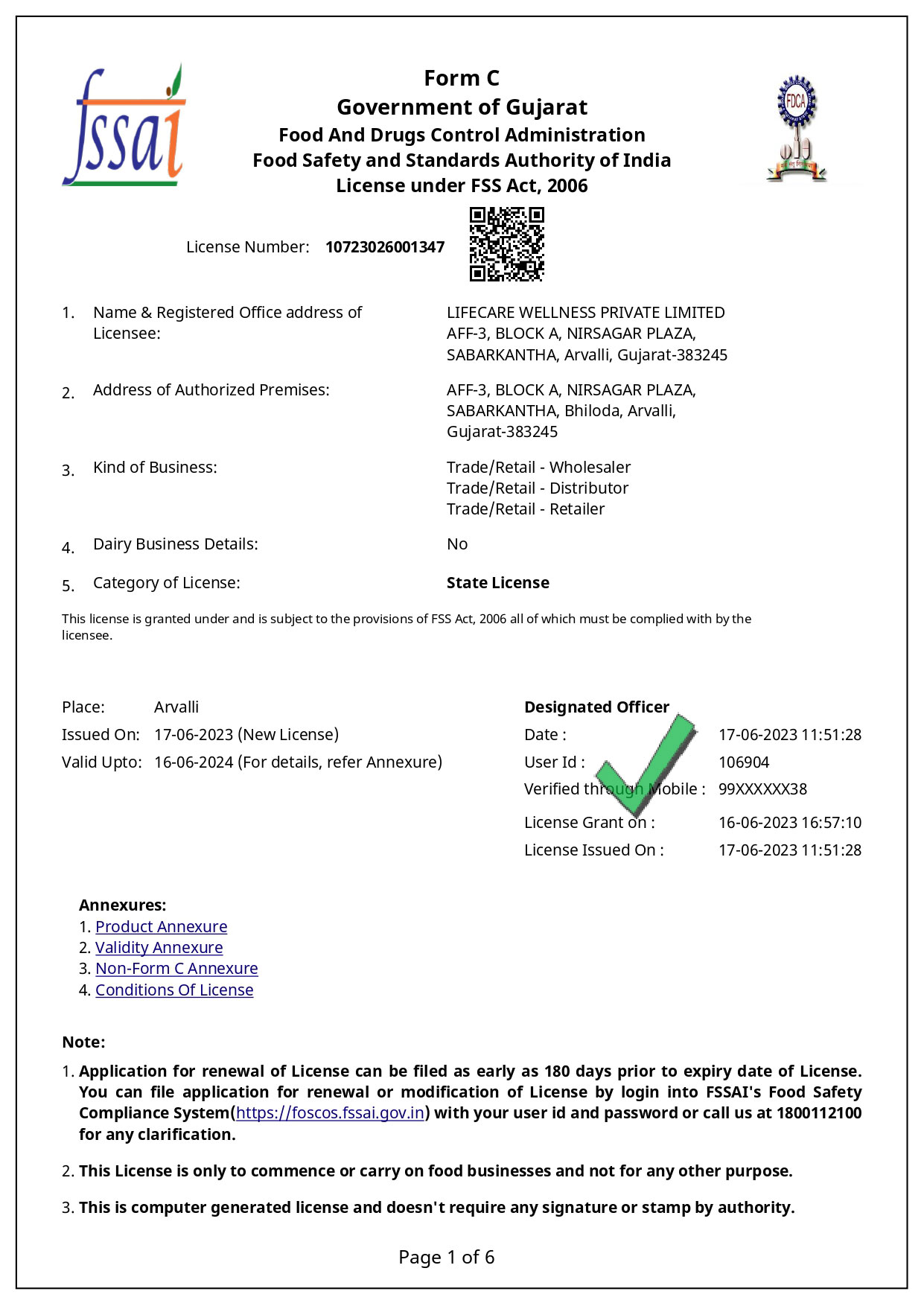 Our Legal Certificates